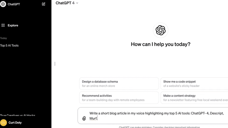 Personal Experience: I've used ChatGPT-4 to draft blog posts, research topics and create imagery. I've also utilized it for brainstorming session ideas, developing marketing strategies, and even overcoming writer's block. Its accuracy and relevance in responses have saved me countless hours.